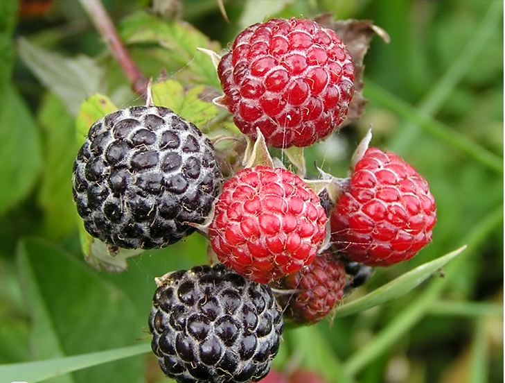 По урожайности черная малина превосходит многие сорта обыкновенной малины. Во время созревания она исключительно декоративна, ее кусты буквально снизу доверху усыпаны кистями черных блестящих ягод. Черная малина – это полураскидистый куст высотой до 2,5 м, со свешивающимися шиповатыми побегами. Она зимостойка, неприхотлива к почвенным условиям, устойчива к вредителям и болезням, но более восприимчива к вирусным заболеваниям. Ее агротехника значительно отличается от привычного для нас ухода за обычной малиной, но имеет много общего с уходом за ежевикой. У черной малины не образуется корневых отпрысков, поэтому размножают ее в основном укоренением верхушек однолетних побегов. Для этого в августе побеги пригибают к земле и прикапывают на глубину 10-15 см. При этом верхушечная почка, прикасаясь к почве, укореняется и образует новое растение. Каждую неделю их необходимо поливать 1-2 раза, а в засушливую погоду – через день. Через 1,5-2 месяца у молодых отводков образуются корни, и они го