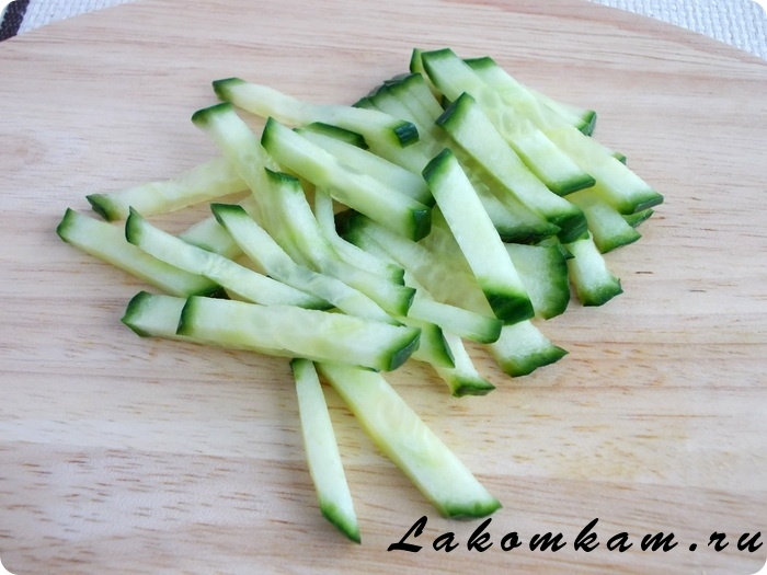 Приготовление полосатого бутерброда. Тщательно вымойте все овощи и зелень. Нарежьте огурец соломкой.