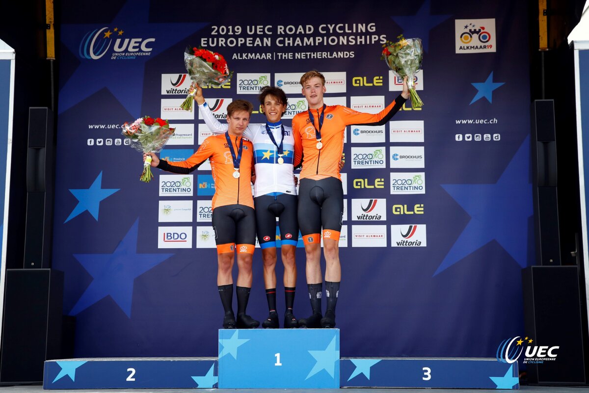 Андреа Пикколо — новый чемпион Европы по велоспорту среди юниоров в индивидуальной гонке с раздельным стартом. Итальянец обошёл двух голландцев, долгое время лидировавших в гонке. «Маленький», а именно так переводится фамилия чемпиона, проехал дистанцию в 22,4 километра за 26 минут и 52 секунды, опередив главного фаворита старта Ларса Бовена на 12 секунд, а Энцо Лейнсе — на 14 секунд. Адам Хольм Йоргенсен из Дании уступил 27 секунд, а эстонец Глеб Карпенко — 34 секунды. Отлично выступил украинский юниор Андрей Пономарь — восьмое место и 48 секунд отставания. Лучшим из двух стартовавших россиян стал Юрий Бутрехин: 18-летний велогонщик проехал дистанцию с 25-м результатом — плюс 1 минута и 49 секунд ко времени победителя. В свою очередь Яков Гусев уступил 2 минуты и 18 секунд, что поместило его на 39-ю строчку итогового протокола. Второй украинский велогонщик Максим Белый финишировал 30-м (+1:58), а белорусские спортсмены Михаил Андросов и Марк Гринкевич — 33-м и 45-м, уступив более дву