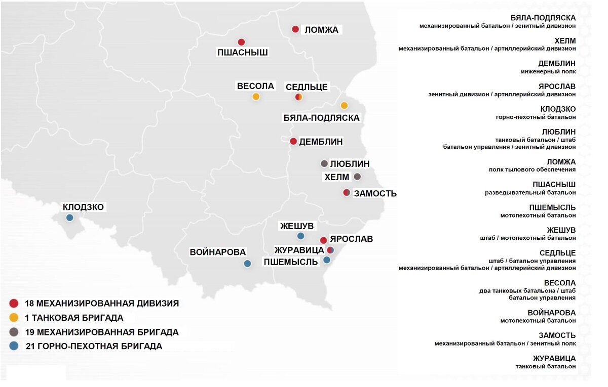 Таким образом, воинские формирования новой дивизии будут дислоцироваться на территории, превышающей аналогичные районы размещения трех других польских дивизий.