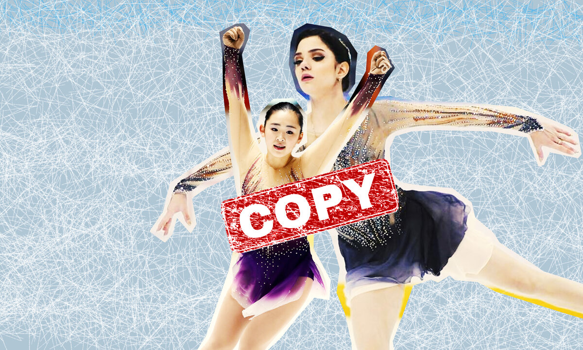 В фигурном катании не редко копируют знаковые наряды известных фигуристов. Предлагаю вашему вниманию небольшую фото-подборку. 1.Белая пачка Алины Загитовой. Ателье "Аксель" занимается пошивом нарядов для фигурного катания. В магазине можно купить реплику платья олимпийской чемпионки. 2. Сидзука Аракава и Евгения Тарасова. Платье японской фигуристки Сидзука Аракава, в котором она выступала в сезоне 2004/2005 напоминает костюмы наших фигуристов - Евгении Тарасовой и Владимира Морозова. 3. Откровенный плагиат костюма Юдзуру Ханю. В прошлом сезоне фигурист Илья Малинин довольно досконально скопировал не только костюм Юдзуру, но и хореографию. Для тех кто не знает, Илья живёт и тренируется в США, в этом сезоне его можно будет увидеть на этапах юниорского гран-при. 4.Плагиат платья Татьяны Волосожар Элишкой Бжезиновой и Алиной Загитовой. В произвольной программе сезона 2010/2011 года Татьяна Волосожар с Максимом Траньковым выступали под музыку Прокофьева. А в сезоне 2013/2014 и 2014/201