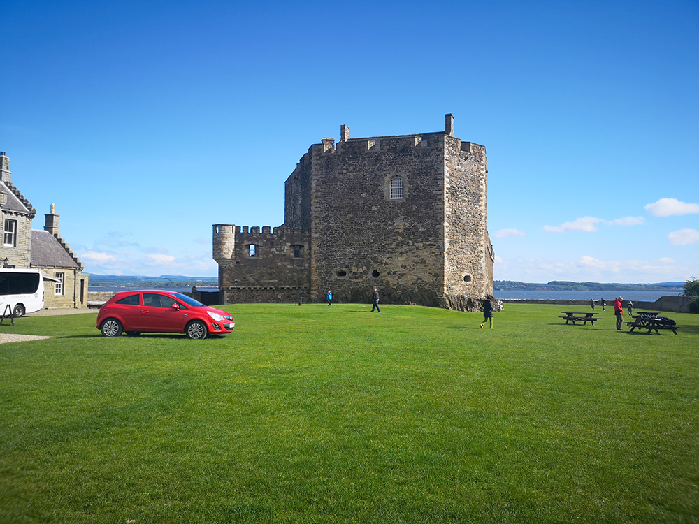 Неподалеку от Эдинбурга находится необычный замок Блэкнесс. Замок – корабль. Замок – тюрьма. Сейчас от него остались только величественные стены. Но бродить по этим каменным комнатам, представляя себе, что происходило тут несколько веков назад – большое удовольствие. Добраться до замка довольно просто, даже если вы путешествуете своим ходом. Сначала из Эдинбурга на поезде — Линлитгоу (Linlithgow). Это займет около 20 минут. Затем – на автобусе №49 до деревни, где и находится Блэкнесс. Замок видно издали. Он чем-то напоминает корабль. Если приехать в момент прилива, эффект усиливается, кажется, что замок плывет по воде. Но мы прибыли в час отлива. Замок был построен в середине 15 века шерифом города Линлитгоу. Довольно скоро эти земли, включая замок, были конфискованы королем Яковом II, и замок превратили в тюрьму. В 1530 году укрепленный замок захватил Оливер Кромвель, но спустя 10 лет Блэкнесс восстановили и снова сделали из него тюрьму. В 1912 году замок перешёл под о