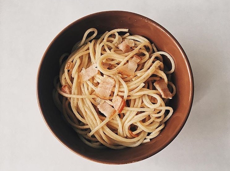 Ингредиенты: 1. Спагетти - 1 пачка 2. Бекон - 1 упаковка (у меня 150 грамм) 3. Лук - 1 средняя шт 4. Соль, перец - по вкусу Этого хватает на 3-4 порции Способ приготовления: 1. Отвариваем спагетти в кипящей подсоленной воде 2. Бекон нарезаем на тонкие полоски , выкладываем на разогретую сковороду 3. Лук мелко режем, добавляем к бекону и обжариваем ещё 7-10 минут 4. Отваренные спагетти добавляем в бекон с луком, солим, перчим ,перемешиваем и выключаем 5. Накрыть крышкой и дать настояться минут 10 Готово 💁🏻♀️ Приятного аппетита! 🥰