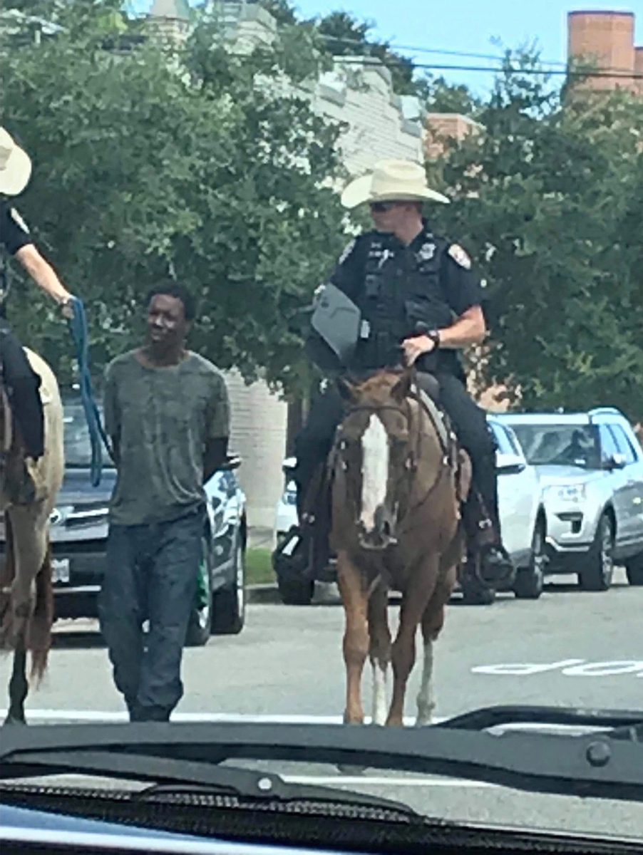 Полиция Техаса под огнём после вирусной фотографии где офицеры верхом на лошадях ведут арестованого на поводке