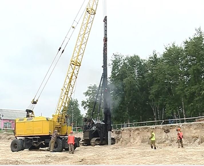 «Выполнены демонтаж сцены, перенос памятника, разработка котлована. Подрядчик приступил к забивке свай».