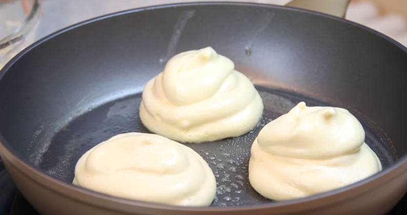 Пару дней назад я столкнулась с замечательным рецептом панкейков,или как у нас , у русских, принято говорить - оладья. Это самый простой по моему мнению рецепт оладьев. На сколько мне известно это распространенная уличная еда в Японии. Что потребуется: Сливочное масло(чтобы смазать сковороду) 2 яйца 40 гр. муки 30 гр. 25 гр. молока 0.5 чайной ложки разрыхлителя 1 чайная ложка ванильного сахара небольшая щепотка соли Приготовление: Первым делом отделяет белки от желтов. Взбиваем белки до устойчивых пиков. Тем временем в отдельной ёмкости смешиваем желтки, молоко и все сыпучие ингредиенты. Далее смешиваем белки и желтковую смесь, очень аккуратно и постепенно. Ставим сковороду на средний огонь и смазываем сливочным маслом, но слегка. Формируем оладья: выкладываем по 2,5 столовые ложки теста на каждый панкейк. Налить в сковороду 2 чайные ложки воды и накрыть крышкой. Выглядеть должно примерно так: Важно следить за тем,что бы на крышке от сковороды образовывался конденсат, то есть постоян