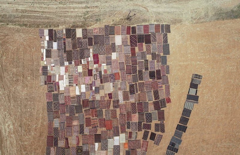 Дрон запечатлел ковры, выложенные на полях в районе Досемеалти туристической провинции Анталья. Около 25 000 ковров были выложены под палящим солнцем почти на 500 акрах земли. Высокие температуры помогают смягчить яркие красители, используемые в коврах ручной работы, в более приглушенные цвета античного стиля, которые предпочитают западные клиенты. Ковры пролежат около месяца, прежде их соберут, почистят и подготовят к продаже. Изготовители ковров говорят, что такой способ используют на протяжении многих десятилетий.