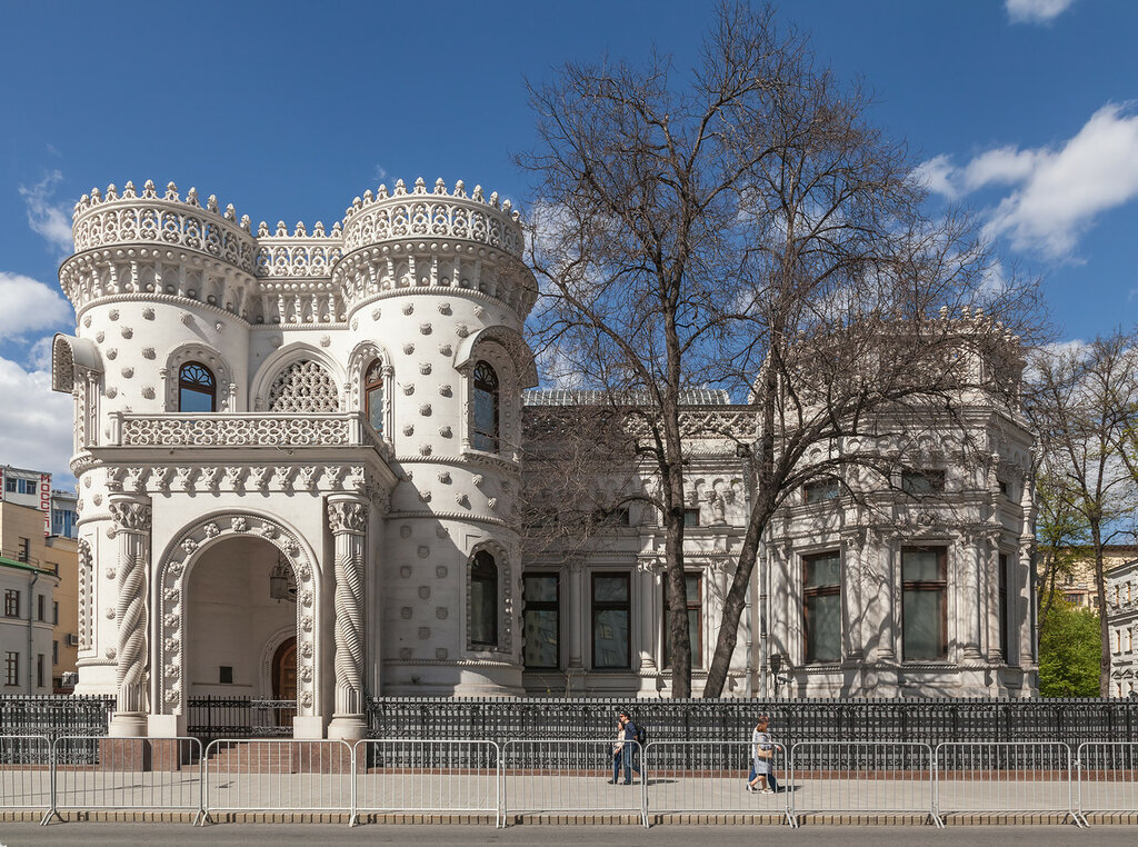 Воздвиженка 16, Дом приемов Правительства РФ, ранее был Домом дружбы с народами зарубежных стран, а по факту был построен для себя Арсением Морозовым в 1895 году. В семейном бизнесе Арсений не принимал участия. Был известен в Москве как красавец, кутила и прожигател жизни. К 25-летнию ему был подарен участок в центре Москвы. Вернувшись из Португалии на этом месте он построил себе дом-замок в испано-мавритенком стиле. Тогда особняк был принят москвичами в штыки. Разгромные статьи, карикатуры, дом назвали «образцом безвкусия». Говорят, что Варвара Алексеевна, матерь Арсения, сказала сыну: «Раньше одна я знала, что ты дурак, а теперь об этом узнает вся Москва». Арсения же это не волновало, в доме закатывались грандиозные тусовки и пьянки. На одной из них Арсений поспорил с друзьями на коньяк, что прострелит себе ногу и не закричит от боли. Тем самым докажет, что человеческая сила воли безгранична. Выстрелил и не закричал. Выиграв спор он продолжил пить и развлекаться. Кровь тем временем