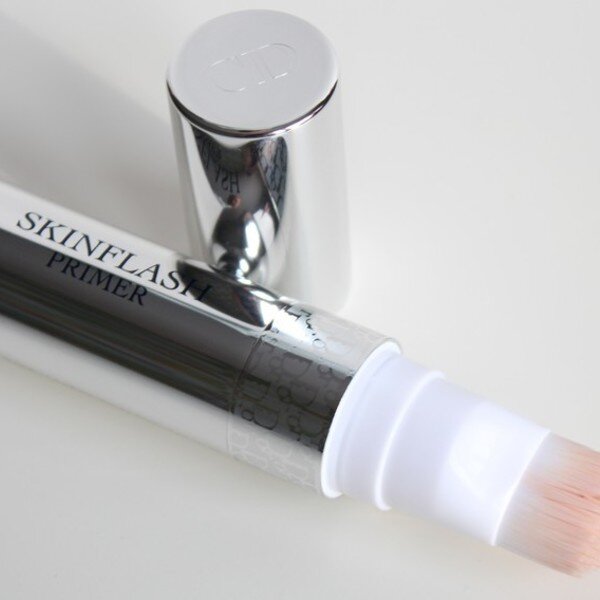 Dior Skinflash Primer — это толстая «ручка» с широкой кистью на конце. Если прокрутить основание «ручки», то продукт покажется из середины кисти. Я снимаю все средство с кисти на руку, а уже потом небольшими порциями наношу его на лицо от центра к вискам. Сам праймер обладает приятным ароматом и нежным персиково-розовым цветом. Текстура флюидная, в нем нет излишнего силикона, поэтому он должен подойти всем типам кожи. Праймер немного высветляет цвет лица, нейтрализует красноту, сглаживает поры, делает кожу более гладкой и скрывает шелушения. Этот праймер добавляет коже свежести и сияния, но заметных светоотражающих частиц в нем нет. Если кожа в хорошем состоянии, то для макияжа можно нанести только праймер и пудру сверху.
