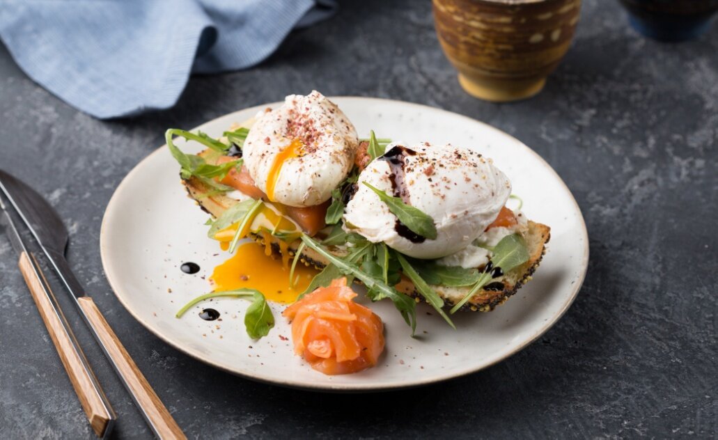 3. Вкусные дополнения. Самые вкусные Яйца Бенедикт получаются со свежеиспечённым багетом и слабосолёным лососем по нашему авторскому рецепту. Зерновая булочка хрустит и от этого становится ещё вкуснее! ☺️ ________________