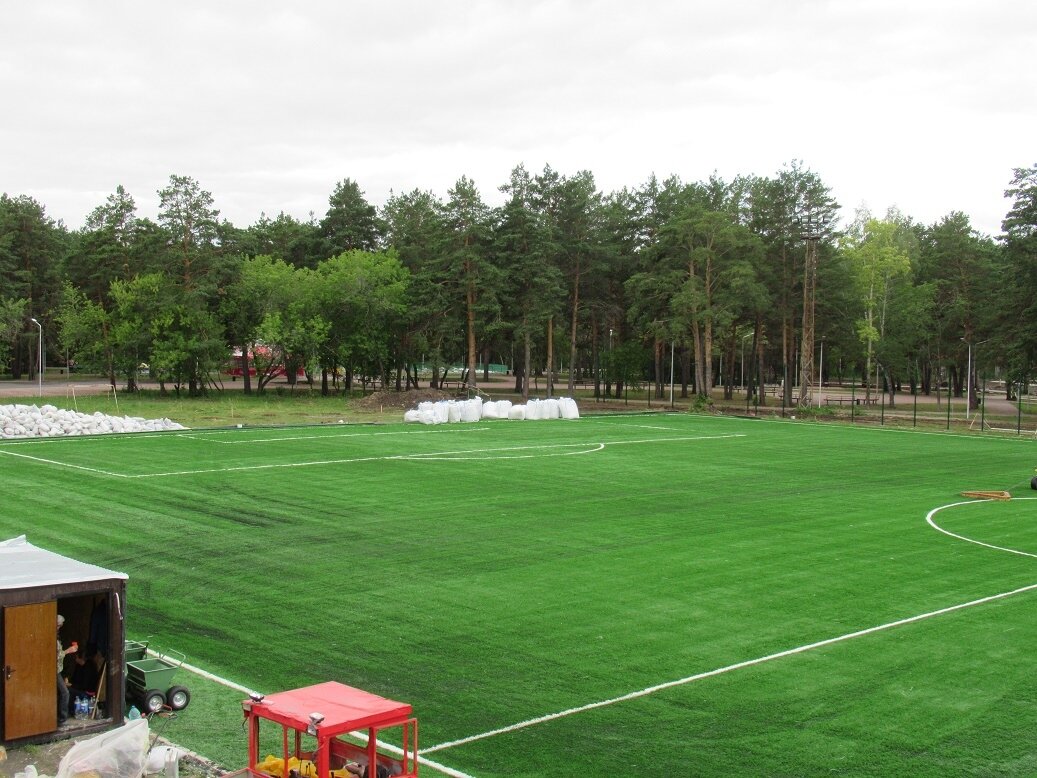 На стадионе «Космос» в понедельник вечером появилось полноценное футбольное поле. О нем рассказывает Елена Шеремет, пресс-секретарь администрации Каменска-Уральского. - Новое искусственное покрытие — 8000 квадратных метров, - сообщает она. - Чтобы искусственная трава стала мягкой, пружинила и соответствовала всем требованиям, рабочим компании «Березит» потребовалось 11 дней и специальные приспособления. Она отмечает, что трудоемкая работа близится к финишу. При этом, по ее словам, сомневаться в качестве не стоит — за плечами у подрядчика четырехлетний опыт. Параллельно с футбольным полем идет монтаж сеточного ограждения, ворот и трибун для зрителей. Оценить проделанную работу можно будет уже в эту субботу, десятого августа.