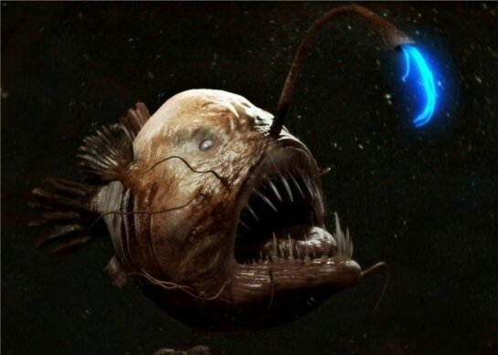 В глубине океана от нас скрывается множество невиданных природных форм рыб. Так какие же рыбы обитают на глубине? вот одни из них: 1. Меланоцет Джонсона (Чёрный удильщик) Рыба из отряда меланоцитовых. Глубина обитания от 100 до 4500 м. По природе является хищником. В качестве наживки использует светлый фосфор на конце иллиция (вырост на голове) 2. Пеликановидный большерот Одна в своём роде. Единственная из семейства большеротов. С помощью своего большого рта, она может заглатывать свою пищу целиком. Иногда её добыча даже больше чем сам хищник. 3. Малоглазый макрурус Рыба с массивным туловищем переходящий в почти нитевидный плавник. Благодаря своему массивному телу и мышечной челюсти её главной добычей становятся ракообразные. 4. Палочкохвост (Stylophorus chordatus). Продолговатая рыба, которая больше схожа со змеёй с усами. Благодаря своей форме способна жить на глубинах с большим давлением. Питается в основном планктоном и мелкими ракообразными. 5. Мешкоглот Своё название получил