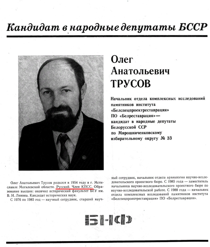 Сегодня празднует свое 65-летие один из главных идеологов т.н. "литвинизма", белорусский националист Олег Трусов. А теперь взгляните на резюме этого кандидата в народные депутаты БССР за 1990 год 👇🏻😅 По данным социологов, в марте 1991 года рейтинг Коммунистической партии Беларуси составлял 52,1%*. Чтобы было с чем сравнивать: рейтинг меркелевской ХДС/ХСС в конце апреля 2019 года колеблется в районе 28%, столько же набрала партия Макрона на выборах 2017 года во Франции.