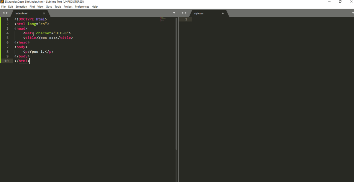 Мы будем писать код сразу в двух файлах и чтобы разделить экран редактора на 2 части нам нужно будет нажать на кнопки Alt+shift+2