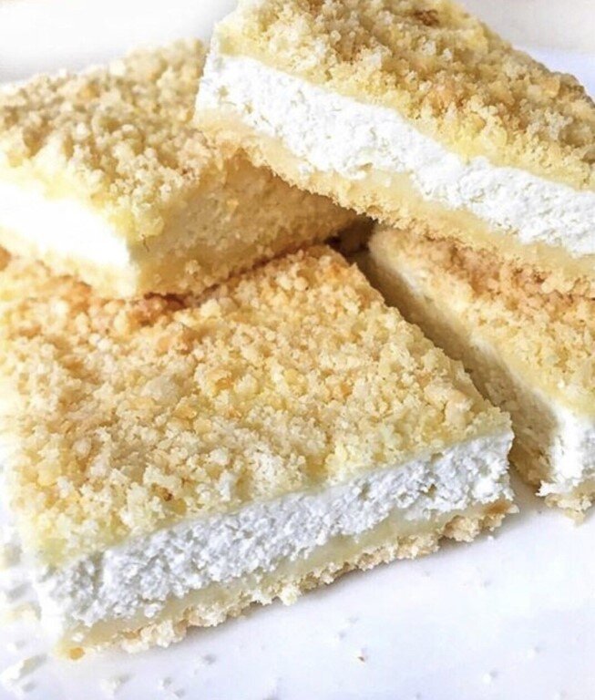 Масло должно быть твёрдое. Рубим ножом на мелкие кусочки и растираем с мукой. Добавляем 2 желтка, сахзам и ещё раз растираем до образования крошки (идеально рукой получается). Творог смешать с белками и сахзамом. Лучше взбить блендером, чтобы не было комочков. В форму высыпаем 3/4 крошки, сверху выкладываем творожную массу и посыпаем оставшейся крошкой. Отправляем в духовку разогретую до 180* на ~30 мин. Даём остыть