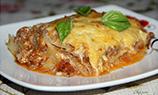 - Выложить в глубокую форму слой капустных листьев, затем слой мясного фарша с хлопьями и овощами. На него выложить часть рикотты. Повторить в той же последовательности, пока не закончатся продукты. Поставить в разогретую до 180 градусов духовку на 20 минут. Достать форму с лазаньей, посыпать тертым сыром, запекать еще 15 минут. Достать лазанью, посыпать рубленым базиликом.