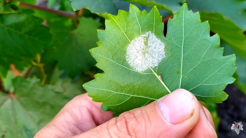 В продолжение темы болезней винограда и проведённого мною ранее эксперимента, суть которого заключалась в выращивании винограда практически без обработок, я расскажу Вам о болезни винограда под названием Милдью. Эта информация будет особенно актуально для тех людей, которые только начинают свой путь в виноградарстве. На фотографиях к этому выпуску Вы можете видеть классическое проявление болезни винограда под названием Милдью. Данная болезнь проявляется в виде характерных жёлтых маслянистых пятен на лицевой части листа и белым налётом в виде пушка на обратной части виноградного листа. Эта болезнь на данный момент находится в стадии спороношения. Напомню Вам, что данные кусты экспериментальные, они были специально обработаны всего два раза, чтобы проверить их устойчивость к болезням при использовании минимального количества обработок. Исходя из результатов данного эксперимента, я могу однозначно утверждать, что проведение всего двух обработок не даёт Вам никакой гарантии защиты Вашего в