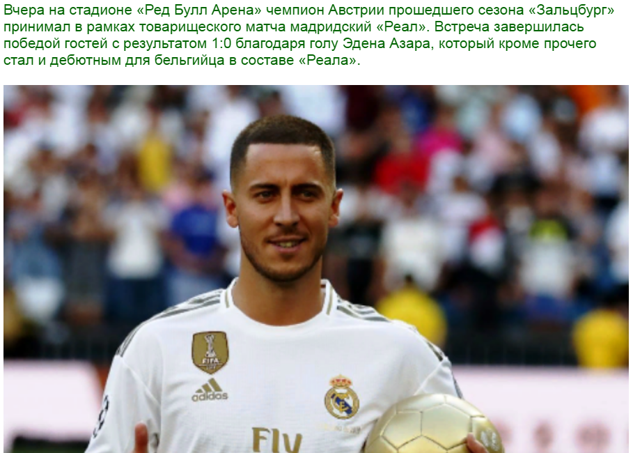 Гол Азара за «Реал» принес победу над чемпионом Австрии «Зальцбургом»: Новостной Терминал