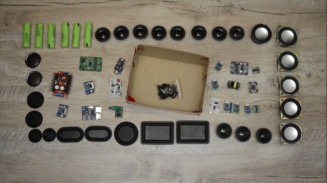 У автора данной самодельной блютуз колонки имеется вот такая вот волшебная коробка, в которой ну очень много всяких прикольных компонентов для создания акустики. Но сегодня, для воплощения задуманного, понадобятся только самые мелкие из них.