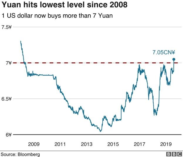 Ответ Поднебесной не заставил себя долго ждать — после объявления о новых пошлинах Народный банк Китая позволил юаню упасть до уровней 11-летней давности.