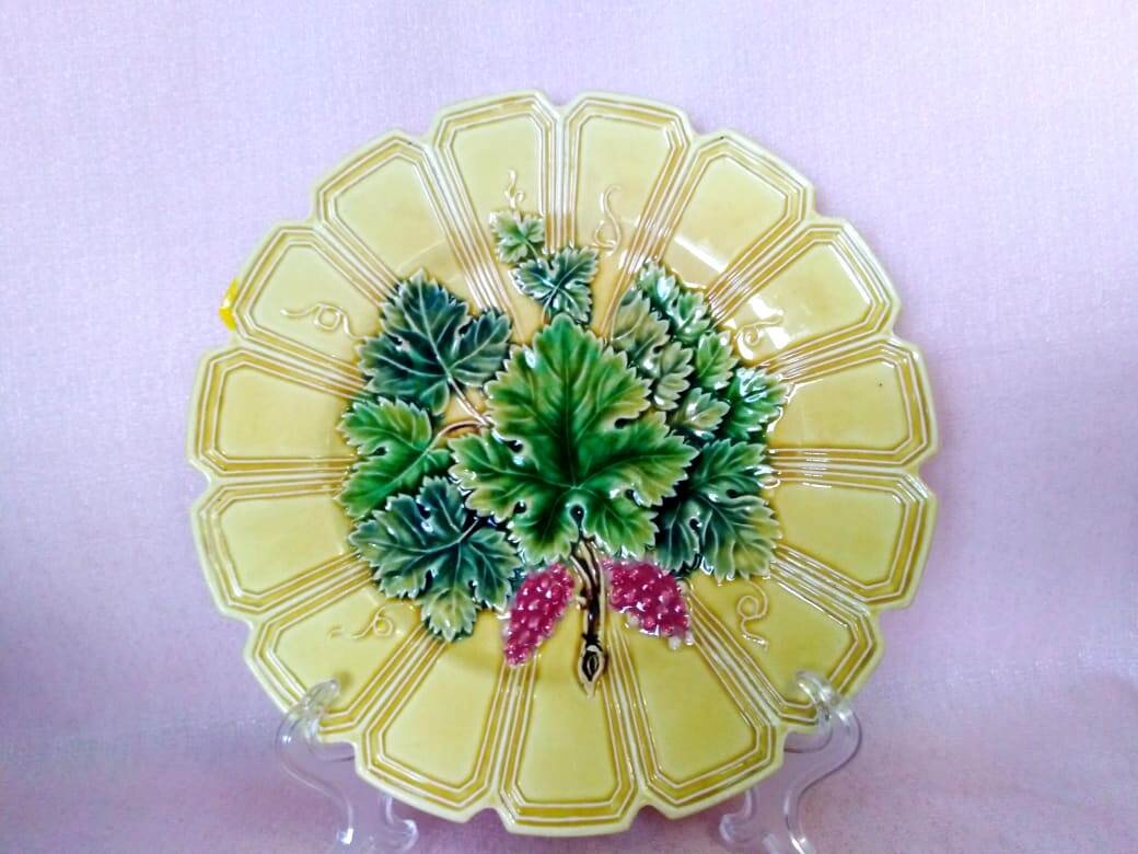 На тарелке как будто лежат листья винограда. И листья, и виноград, и усики, и черенки листьев - все это рельефное. И вот за счет этого объема и росписи выглядят все просто потрясающе.