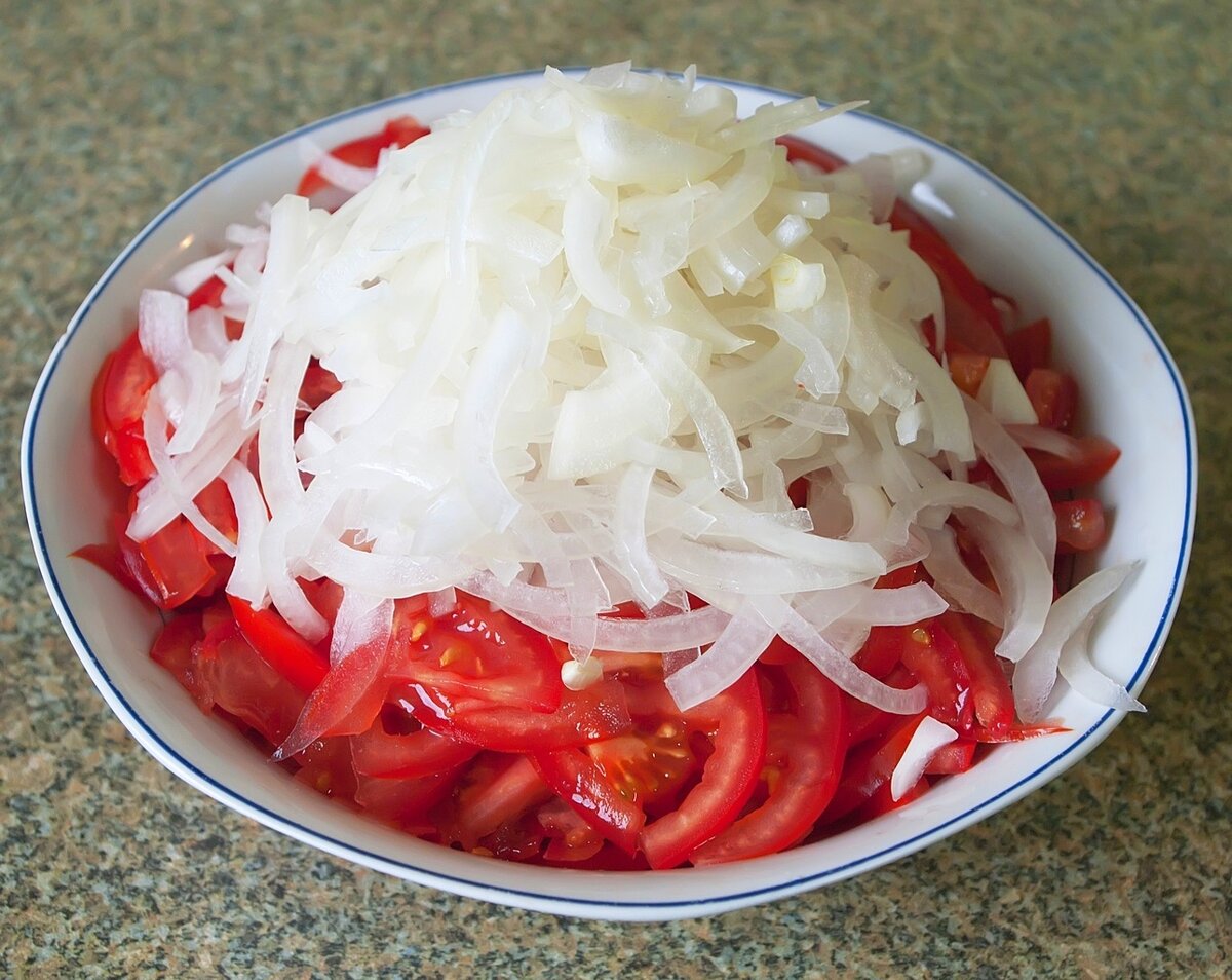 РЕЦЕПТ «Шакар – Оба»: Прежде всего, нужен нежный белый (тухум-пиёз) либо шафранный лук. Вторым по значению компонентом является помидор сладкий, сочный, спелый самый. Третьим и немаловажным компонентом приготовления данного божественного салата является нож, острый и удобный, наподобие узбекского пичак вороненой стали. Четвертый компонент – зелень типа кашнич – кишнец – кориандр … Пятый компонент молодой сладкий огурец (если горький и старый – лучше не надо). Шестой компонент – спелый болгарский перец, в котором витамина Ц намного больше, чем в лимоне и который своими благотворными ароматами очистит любой желудок, даже не способный к удобоваримости калорийных мужских блюд восточной кухни. Седьмой компонент – пряности типа мурч (тонкомолотый черный индийский перец). Перечисленные компоненты сделают правильно приготовленный салат бальзамом для любого желудка и очистят его вместе с божественным пловом, сделав сытым на два дня. Можно готовить если есть соответствующее вдохновение, проточн