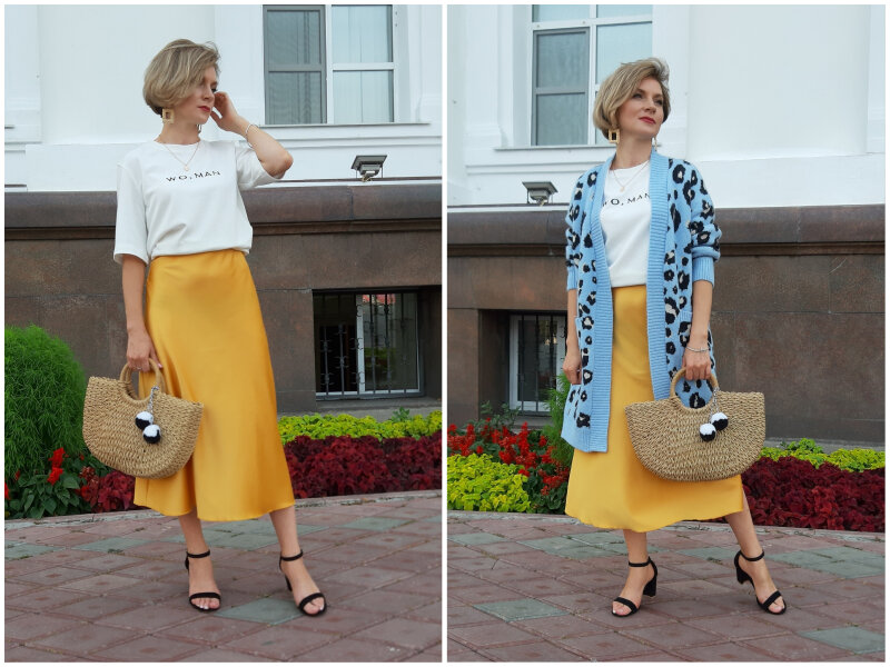 Юбка из сатина - хит этого года! В Зара они были представлены в розовом, желтом, черном и белом цвете. Я примеряла в розовом и моему разочарованию не было предела, ужасное качество за 2800 р. Затяжки появляются от одного только вида острого ногтя. Под впечатлением даже написала статью: Юбки из Zara, которые я никогда не куплю.