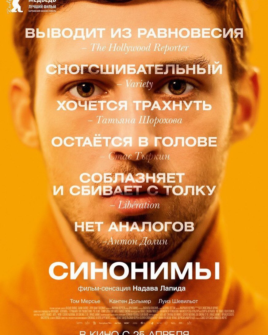 Синонимы наделали немало шума на Берлинском кинофестивале, забрав не только статуэтку медведя, но и хвалебные отзывы воротил киноиндустрии. И если вы незнакомы с фестивальным кино, то Синонимы станут для вас тем тяжёлым опытом (не в плане эмоций, а скорее в плане тягучести происходящего), через который должен пройти каждый киноман. Если же медленные, меланхоличные фестивальные картины вызывают у вас живой интерес, то ваши ожидания будут окуплены сполна! Но что кроется за пластилиновым лицом главного героя, и где тонкая грань между глубоким подтекстом и пошлой шелухой? Вот тут действительно есть повод серьезно задуматься…