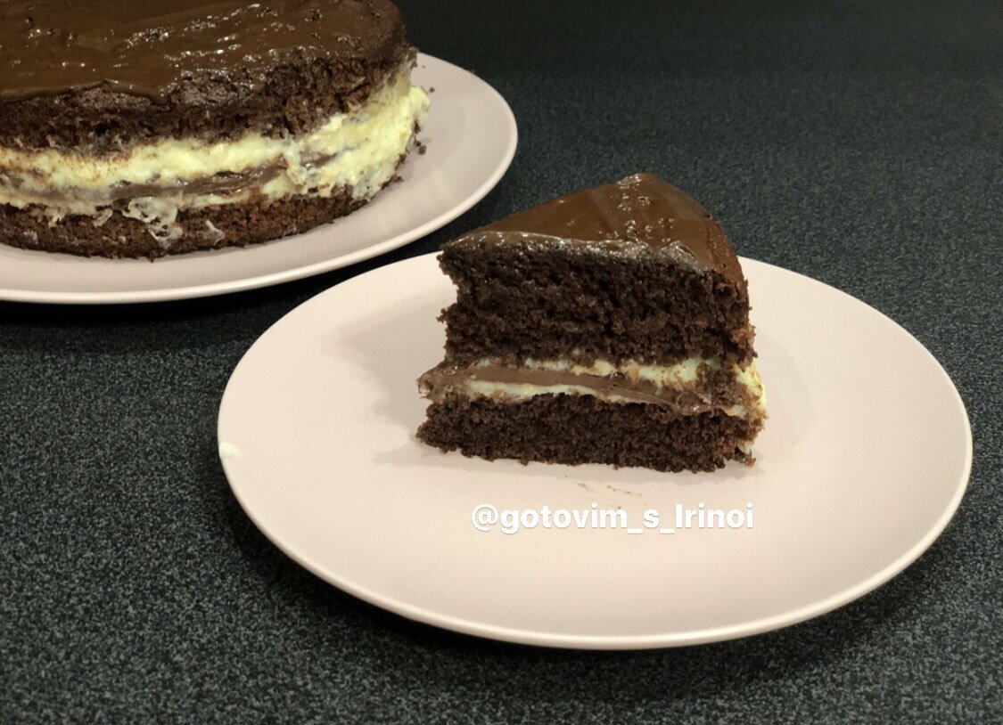Доброе утро мои дорогие. Очень люблю шоколадный влажный бисквит, его не нужно пропитывать и он сочетается с любым кремом. Ингредиенты: Для теста 1. Сахар - 1 стакан ( 200 грамм) 2. Яйцо - 1 крупное 3. Какао - 25 грамм ( у меня красный ярлык) 4. Ванильный сахар - 1 пакетик 5. Разрыхлитель - 1,5 чайные ложки (10 грамм) 6. Молоко - 100 мл. (половина стакана, у меня 2,5%) 7. Мука - 1 стакан (140 грамм) 8. Масло растительное - 50 мл. 9. Кипяток - 100 мл. Для начинки: 1. Сливки 33-35% - 200 мл. 2. Шоколад белый - 170 грамм 3. Желатин - 4-5 грамм 5. Нутелла или шоколад. Приступаем к приготовлению бисквита: 1. Смешиваем сахар, ванильный сахар с яйцом и взбиваем до бела. 2. Добавляем молоко. 3. Затем добавляем какао, разрыхлитель и муку. Перемешиваем массу миксером до однородности. 4. Добавляем растительное масло, и опять перемешиваем миксером. 5. Добавляем в тесто кипяток и тщательно перемешиваем. 6. Заливаем в форму, у меня форма диаметром 18 сантиметров. 7. Ставим в заранее разогретую до 19