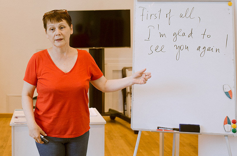 — Я специально искала курсы: в августе полечу в Америку, дочь будет учиться там, еду с ней, она знает язык, а я нет, и мне надо будет там как-то общаться. Специально обратилась за курсами английского в наше отделение соцзащиты района Якиманка. И мне сказали, что вот здесь будет проходить английский язык с нуля, как раз мой уровень. Это замечательный проект: позволяет и мозги потренировать в нашем элегантном возрасте, и вообще очень приятно почувствовать себя опять студентом.