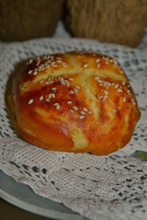 НЕМЕЦКИЕ БУЛОЧКИ С КУНЖУТОМ , НЕОБЫЧАЙНО ХРУСТЯЩЕЙ КОРОЧКОЙ И НЕЖНЕЙШИМ МЯКИШЕМ . Название этих булочек - Laugenbrotchen , что в переводе с немецкого звучит как , что - то ядовитое , а именно - Хлеб из щелочи . Cлава Богу , что перевод названия я узнала после того как уже испекла и полюбила их . Иначе я бы не рискнула их готовить , а тем более их попробовать на вкус ))) Очень вкусные и необычные на мой взгляд булочки . Вкус иной , чем у обычных дрожжевых булочек . Хрустящая корочка и пористый мягкий мякиш . Перед выпечкой их надо искупать в содовом кипящем растворе , от этого образуются красивые трещинки и неповторимая загорелая корочка . Булочки подходят также для тех кто на диете или соблюдает пост . Ингредиенты : мука пшеничная 500 - 600 гр сливочное масло или маргарин 75гр можно растительное масло, соль 1ч.л, молоко 130 мл вода 130 мл дрожжи сухие 7 гр сахар 2 ст.л. Содовый раствор: вода 1,5 литра , сода пищевая 3 ст.л. Для посыпки : кунжут , мак . В заме