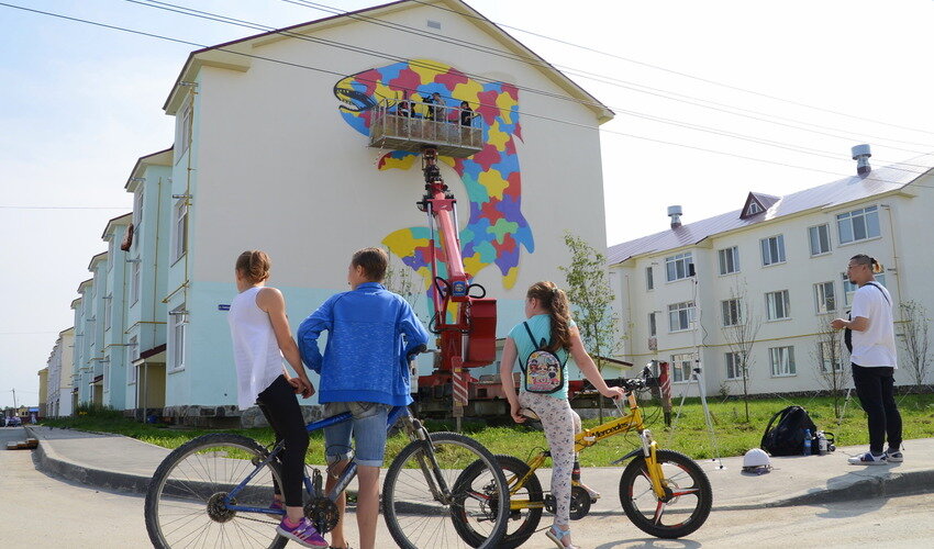 За два дня до начала «Южного Стрит Феста» его участники завершили работу над первым объектом. На фасаде дома в селе Дальнее на улице Байкальской накануне появилось изображение яркого лосося, которое уже вызвало восторг у большинства жителей микрорайона. Авторы арт-объекта — топовые художники из Южной Кореи, представители LAC Graffiti Studio. Рисунки под их авторством украшают многие объекты южнокорейской столицы, а также других городов мира. Отличительная особенность ребят — яркие, сочные краски. Их участие в сахалинском фестивале — большая удача, график стритарщиков очень плотный. На Сахалин они прилетели из Японии, а уже сегодня вновь улетают в Южную Корею для участия в большом телепроекте. Организаторы «Южного Стрит Феста» пояснили: привезти LAC Graffiti Studio помогли в региональной общественной организации «Сахалинские корейцы», куда они обратились за помощью. Эскиз рисунка на фасаде — огромный разноцветный лосось — одобрили сразу, были внесены лишь незначительные правки. Сами р