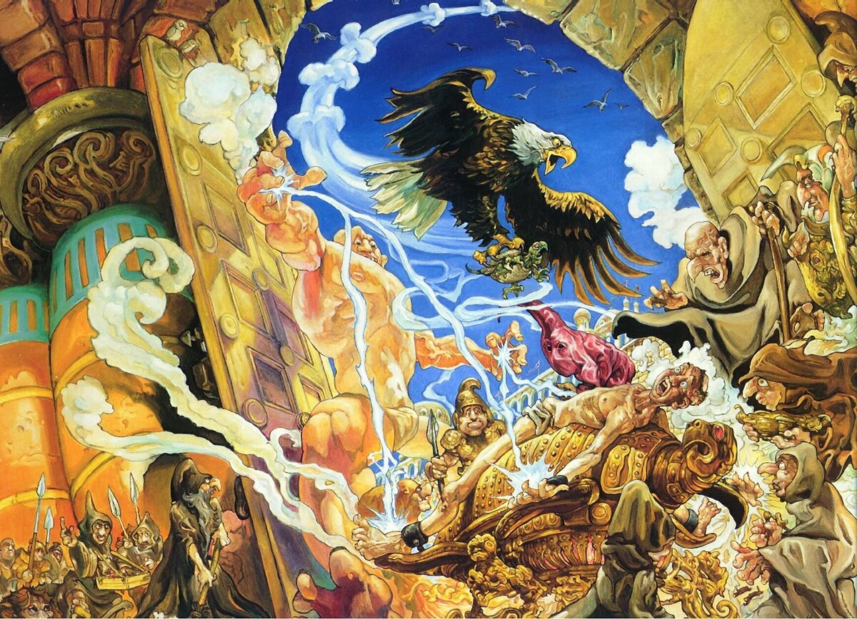 Начну с того, что «Мелкие боги» попала в разряд любимых где-то на середине повествования, оставшаяся половина лишь разжигала мои тёплые чувства и продлевала «медовый месяц». Жары, кстати, было очень много: солнце, пустыня и огонь – три составляющие хорошей книги о пророках, вере, мальчике и его боге, который раньше был быком или орлом, а теперь вот оказался черепашкой, потому что его акции резко упали в цене. Сложилось ощущение, что Терри был в ярости, когда писал эту книгу. «Маленькие боги» в приятном смысле злая по отношению к хорошо продуманным персонажам и монотеистической религии, где от самого бога осталось лишь оправдание захвата власти и внутреннего террора. Ах да! И резкое непринятие чужих верований – веская причина, чтобы отправиться в другую страну и устроить там государственный переворот. Хорошо, что в мире Пратчетта не придумали авиабомбардировку, иначе вместо и без того короткой книги могла получиться скромная брошюра. Не удивлюсь, если в современных реалиях эта история с