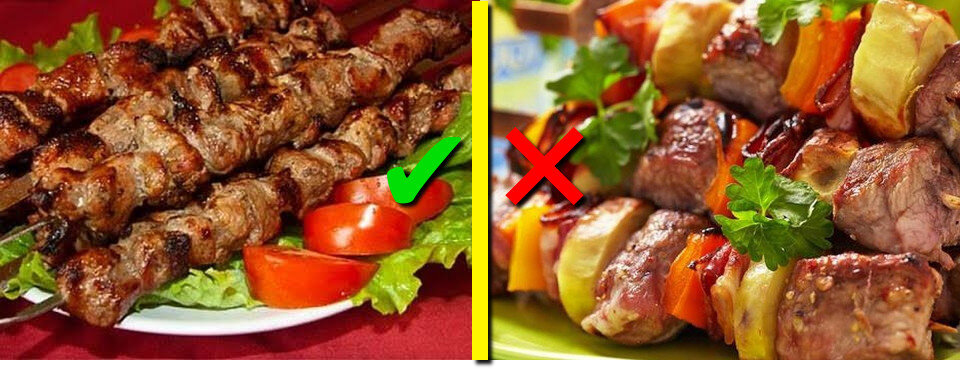 Некоторые имеют привычку добавлять на шампур овощи при жарке шашлыков. Непонятно, для чего это делается, ведь овощи готовятся гораздо быстрее мяса. Поэтому они, скорее всего, сгорят при жарке, оставив после себя не очень приятный запах, который впитается мясом.
