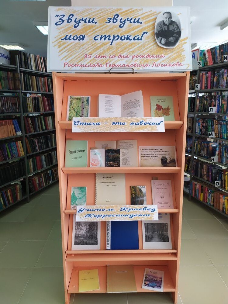 26 августа поэту и педагогу исполнилось бы 85 лет. В четь этой даты сотрудники центральной библиотеки организуют книжную выставку Ростислав Германович работал учителем Ларинской школы, был талантливым поэтом, участником районного литературного объединения "Росток", краеведом, отличником народного просвещения СССР, а также активным корреспондентом районной газеты "Колос". В память о Ростиславе Логинове, в центральной библиотеке подготовили выставку «Звучи, звучи, моя строка», на которой экспонируются сборники его стихотворений, раскрывающие творчество и жизнь поэта. 26 августа Ростиславу Германовичу исполнилось бы 85 лет.