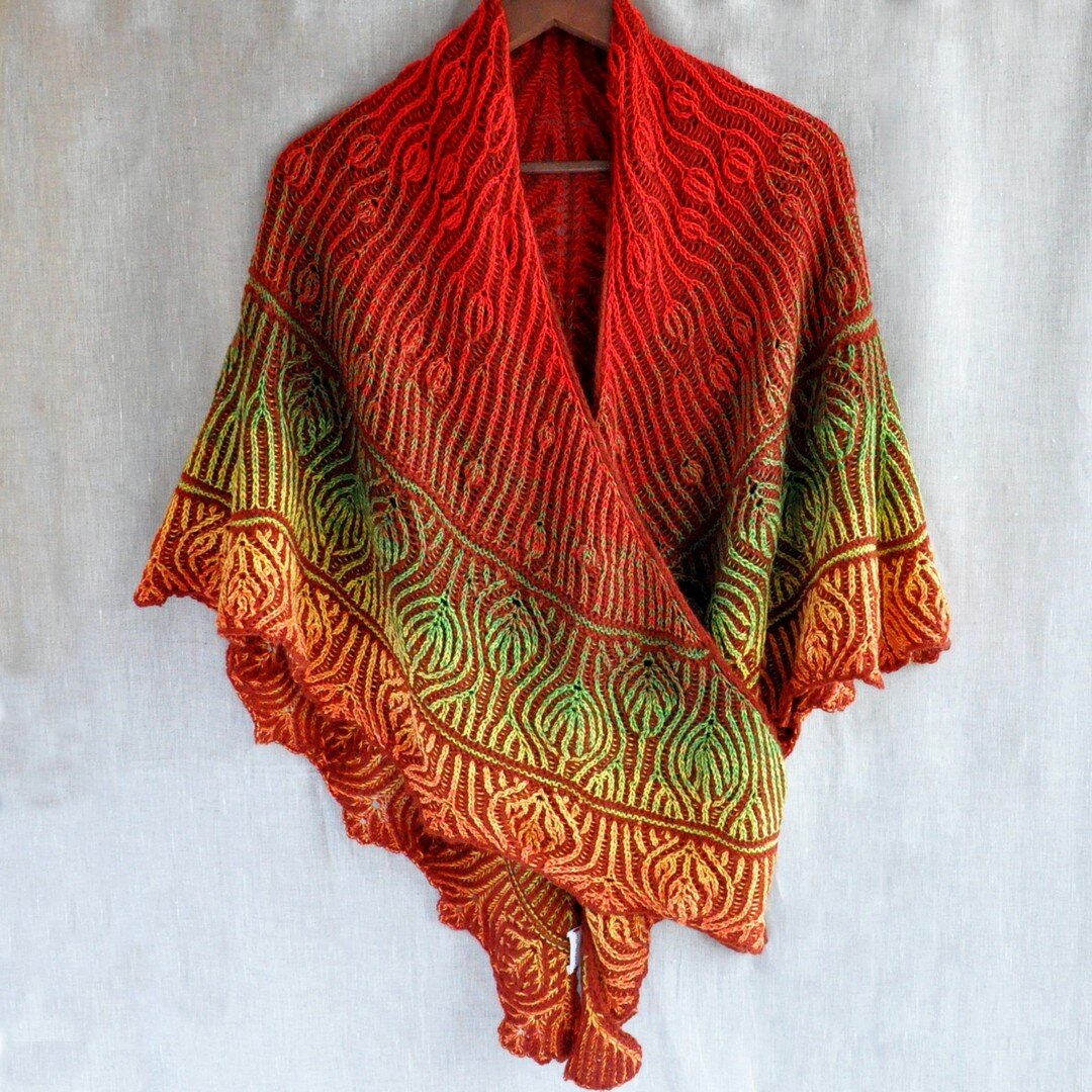 Долго вынашивала идею связать шаль в своей любимой технике бриошь. Работа большая и трудоемкая. Вязать решила из пряжи YarnArt Flowers от турецкого производителя YarnArt и тонкой шерсти в два сложения. Теперь я хочу показать, что получилось и добавить некоторые нюансы процесса вязания. Автор: Татьяна Моисеева - преподаватель школы «Вяжи Онлайн» Дизайн Дизайн шали рождался в процессе работы, как это чаще всего у меня бывает. Исходя из цветов пряжи, все полотно разделила на три части. Процесс работы Техника вязания бриошь Изделия в технике бриошь двусторонние и вяжутся нитями контрастных цветов. У меня это YarnArt Flowers и тонкая шерсть в два сложения. Техника основана на вязании английской резинки. При вязании прямого полотна на одной стороне лицевые петли провязываются одним цветом, а изнаночные снимаются с накидом, на обратной стороне лицевые вяжутся вторым цветом, а изнаночные снимаются, и делается накид. Узоры вывязываются прибавлением и убавлением петель. Для тех, кто интересуется