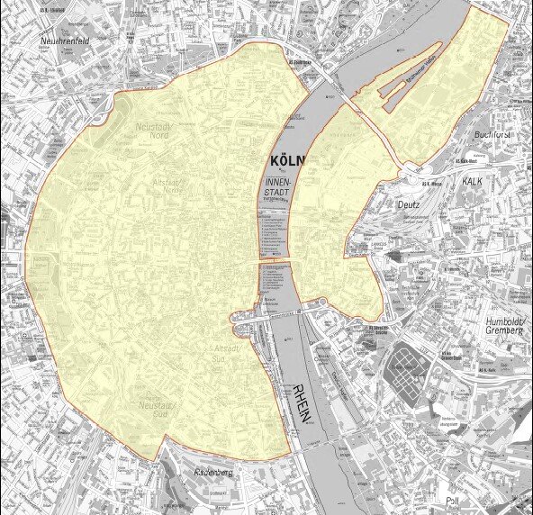 Начиная с 22 августа текущего года, центральные улицы немецкого города Кельн, а также некоторые районы Дойца и Мюльхайма будут закрыты для транзита грузовых автомобилей, чья масса превышает 7,5 тонн. Данные нововведения направлены на реализацию национальной программы: «чистый воздух»