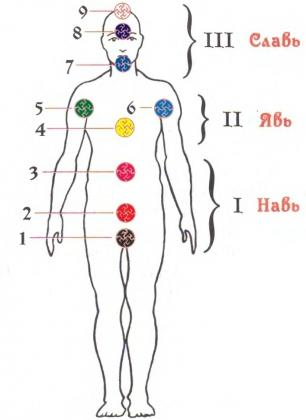 Каждый энергетический круг в теле человека имеет в своем составе половину мужской энергии и половину женской, которые контролируются определенными Богом и Богиней – управителями данных видов энергетических потоков (вообще в соответствии со славянской терминологией, Боги это существа более высокого порядка сложности по отношению к людям).