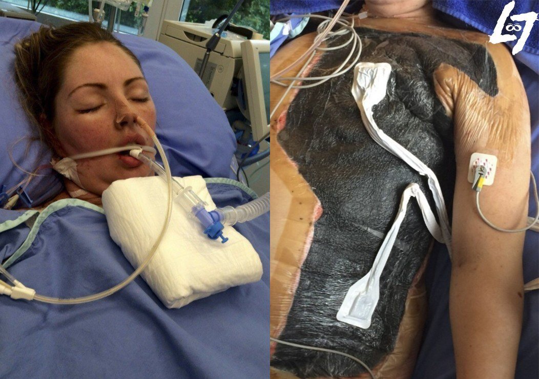 После игры в вышибалы 35 летняя Лесли получила небольшую рану на груди и дальше начался полный пиздец. В рану попала инфекция повлекшая тяжелые последствия. Хирургам пришлось удалить грудь женщины и большую площадь поврежденного туловища. Потребовалась пересадка кожи.