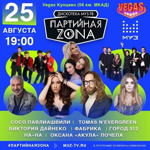 Музыкальный канал МУЗ-ТВ продолжает серию грандиозных вечеринок и приглашает всех на «Партийную зону МУЗ-ТВ» в торгово-развлекательный комплекс VEGAS (Кунцево)! Ближайший эфир: 25 августа в 19:00 Не пропустите!