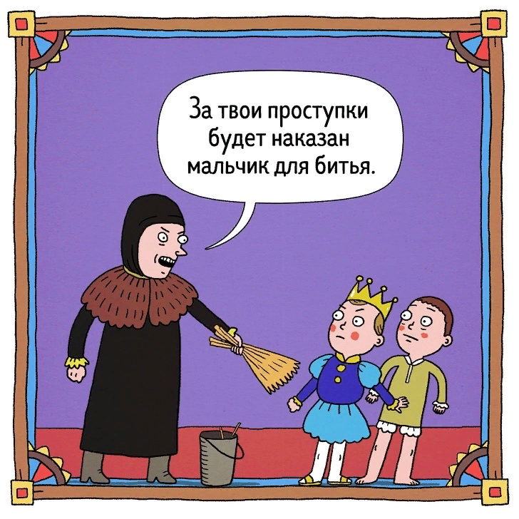 Мальчиком для битья в Англии в XV–XVI веках называли того, кто принимал на себя все наказания, предназначенные юному наследнику престола, защищенному божественным правом. Дело в том, что принц – это будущий король, а король – наместник Бога на земле, поэтому бить такого золотого ребенка нельзя. Зато есть другие дети. Для таких целей мальчиков принимали на службу. Это было что-то вроде почетной должности при английском дворе в XV-XVI веках. Причем, получить такую достойную работу было не так и просто, — это обязательно должен быть ребенок благородных кровей. Чтобы наказание возымело эффект, будущий король должен был испытывать сильную эмпатию к мальчику. Поэтому они много времени проводили рядом, вместе учились и играли. Сложившиеся крепкие дружеские отношения не позволяли принцу часто нарушать дисциплину. В романе Марка Твена «Принц и нищий» одним из персонажей также был мальчик для битья, который, не подозревая, что принц самозванец, помогал ему выучиться заново тонкостям при