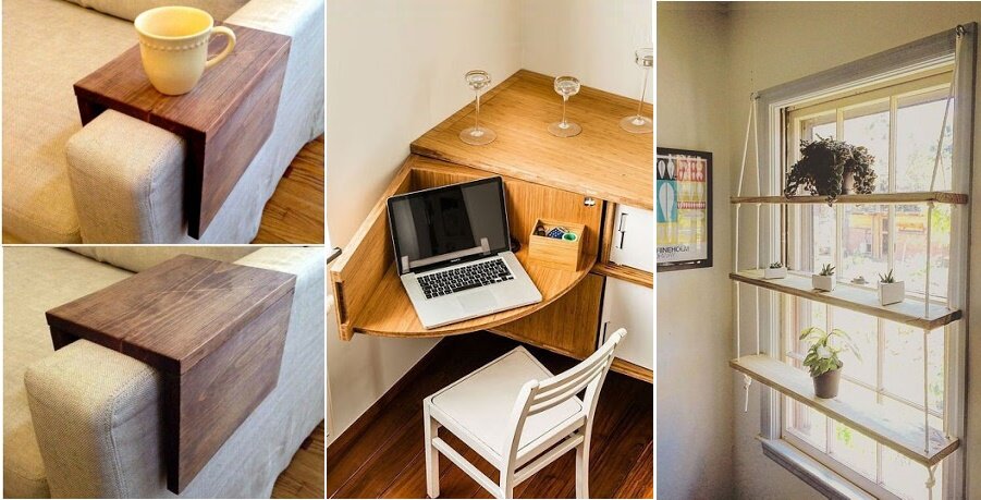 Ассортимент полезных товаров для дома огромен, но, согласитесь, купить их все человеку со скромным достатком просто не представляется возможным. Некоторых приспособлений, которые были бы полезны лично нам, увы, не найти в свободной в продаже. Ниже представлена небольшая подборка действительно полезных предметов, создать которые можно своими руками! Кофейный столик В гостиной катастрофически не хватает места для журнального столика, а вы просто обожаете пить чай или кофе сидя на диване или в кресле? Проблему решит простое приспособление — импровизированный миниатюрный столик, придвигаемый к боковой части дивана, П-образная конструкция, надеваемая на подлокотник или узкая треугольная лестница. Гладильный табурет Этот предмет больше заинтересует тех, кто шьет — на профессиональном или любительском уровне. Мастерицам очень знакома ситуация, когда прострочив короткий плечевой шов или стачку на косой бейке, так не хочется вставать и идти к гладильной доске. Но, увы, без этой маленькой, но оч