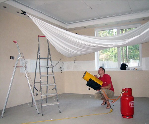 Натяжной потолок хорош тем, что не требует особого ухода и обслуживания. Он не выцветает, не трескается, не боится усадки дома, что делает его идеальным отделочным материалом. Технология установки натяжных потолков не такая сложная, как может показаться на первый взгляд, и может быть выполнена самостоятельно. На поверхности натяжных потолков не образуется конденсат, они не впитывают, не пропускают влагу, являясь идельным решением для ванных комнат и спасая ремонт в случае затопа с верхних этажей. Полотна неприхотливы в уходе: имеют антистатичное покрытие и не притягивают пыль. Если нужно удалить загрязнение, достаточно смочить мягкую ткань в мыльном растворе или спиртосодержащей жидкости (для мытья окон). Нельзя использовать жесткие щетки, абразивные вещества. ПВХ-полотна выдерживают температуру от 0 до 50 град.С, а тканевые можно использовать даже при минусовых показателях температур. Если вы решили установить натяжные потолки самостоятельно, вам потребуются специальные инструменты и