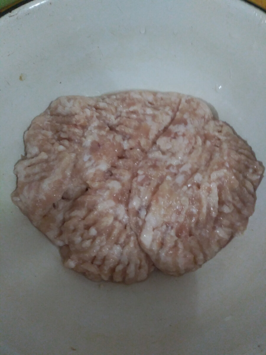 На разогретую сковороду наливаем 1 столовую ложку растительного масла и этой же ложкой выкладываем фарш.