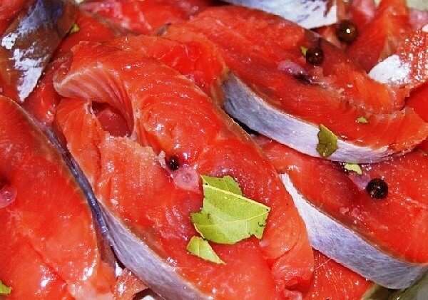 Укладываем куски рыбы в контейнер или любую глубокую емкость.