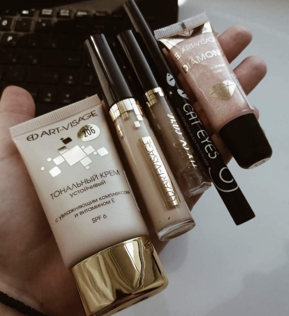 📎 Тональный крем устойчивый ~300₽ - финиш матовый, в поры не проваливается, блеск может появится ~ через часов 5-6. Для комби и жирной кожи 👌 ⠀ 📎Консилер ~200₽ - под глазами синячки и постакне замажет, с воспалениями нет. Не сушит, легкий. ⠀ 📎Гель для бровей ~200₽ - хорошая фиксация, держится целый день, волоски не склеивает. ⠀ 📎Подводка ~180₽ - удобная, можно нарисовать и тонкие, и толстые стрелки, стойкая. ⠀ 📎Блеск для губ ~120₽ - красиво переливается.