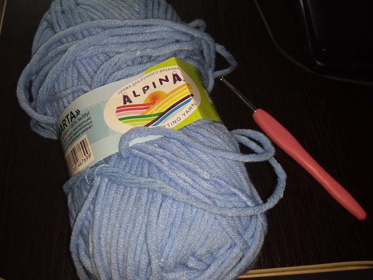 Всем привет! Вот такую симпатичную шапочку я связала для своего малыша всего за один вечер. Пряжа Альпина Марта цвет №12 голубой. Крючок 5 мм. Такая шапочка вяжется очень просто, узором резинка. Вертикальным положением. Сшивается по краям и с верху, соединительным столбиком. Таким же методом я вязала шапку и для себя))) темно синего цвета. Мерку снимала от макушки до височной доли. У меня вышло 16 см. Если кто-то не знает, как вязать резинку крючком то ссылку можно посмотреть в конце статьи. Там подробное описание. Вяжем полотно узором резинка до необходимой длины. По окружности головы вышло 46 см. У меня шапка на 44 см. Так как резинка тянется то вяжется такая шапочка в притык, без прибавки для шва. Окантовку провязала из столбиков без накида, для лучшего прилегания к голове. Для нее взяла пряжу этой же марки, но другого цвета. А дальше делаем ушки и завязки. Можно пришить ленточки, я сделала веревочки в виде косички, из ниточек. Ушки вязала столбиками без накида. Отметила ну