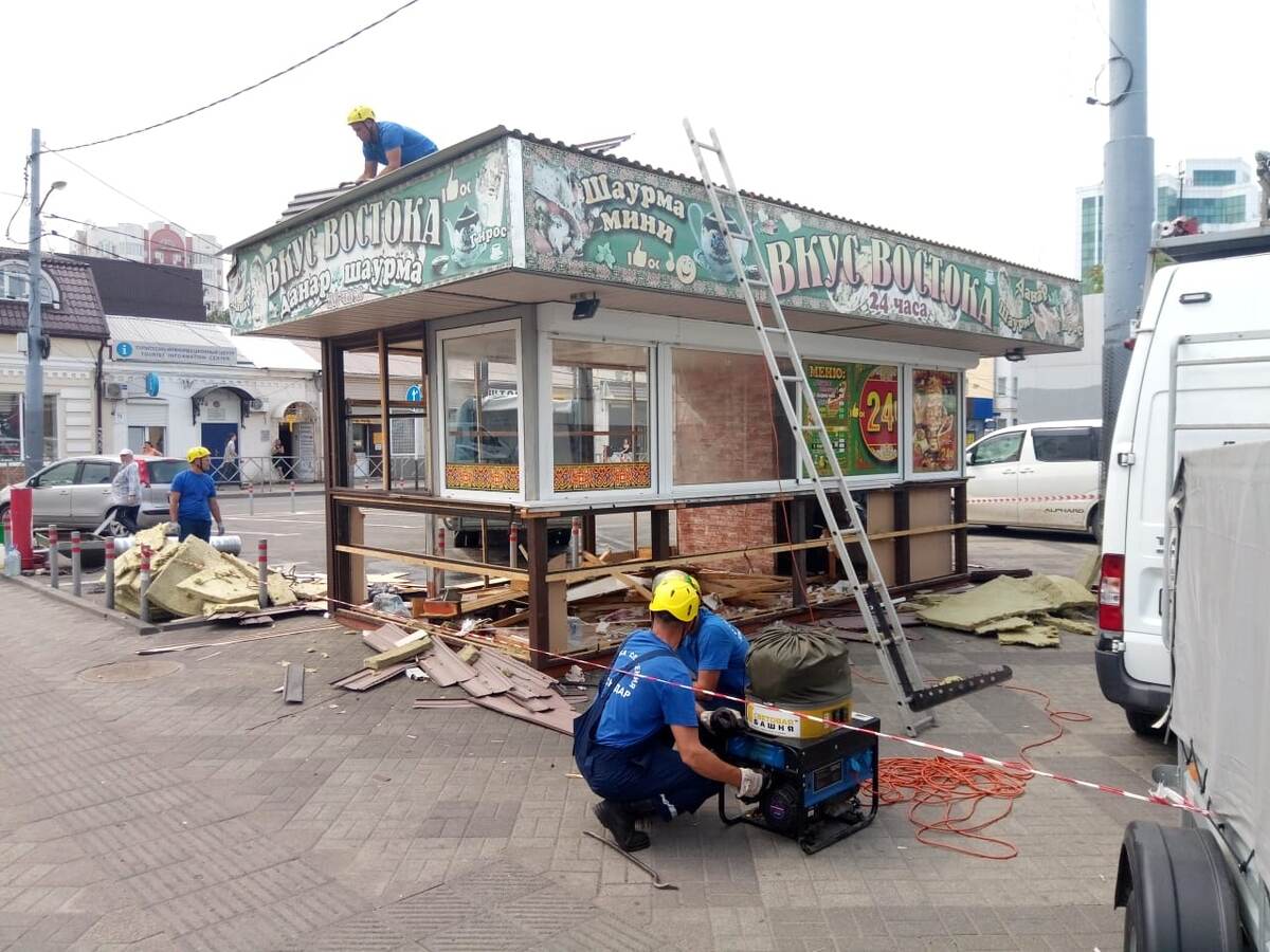Незаконный торговый павильон на пересечении ул. Коммунаров и ул. им. Гоголя сносят в Краснодаре