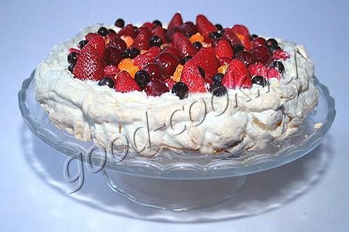 - Существует более пятисот рецептов торта Павло'ва (ударение на букву О). Но в основном они отличаются набором фруктов. Ещё есть отличия в количестве крахмала. Иногда в безе добавляют какао, шоколад или орехи. Но основа рецепта всегда одна - это корж безе, покрытый взбитыми сливками и украшенный фруктами. У этого торта должна быть определённая консистенция и сочетание вкусов. Корж запекается при температуре более высокой, чем температура высушивания безе. Из-за этого внешний слой получается сухим и хрустящим, а внутри белки мягкие, напоминающие зефир. Цвет коржа может быть разного цвета - от кипельно белого, до розовато-кремового. Чем ниже температура выпекания, тем светлее будет корж. Допустимо, чтобы безе было покрыто трещинами. Вкусы торта Павлова гармонично сочетаются. Внизу находится сладкий корж, на нём лежит влажный воздушный крем, и завершают конструкцию кислые ягоды и фрукты. Интересный момент. Чем проще торт, тем длиннее у меня получается описание. А торт Павлова можно отнести к разряду простейших.
