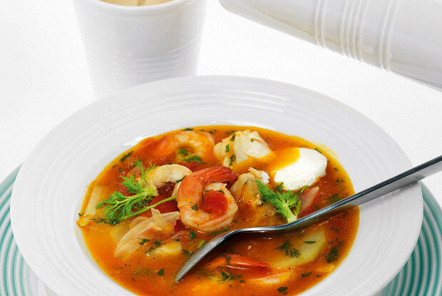 ИНГРЕДИЕНТЫ Фенхель 400 г Чеснок 4 зубчика Лук репчатый 2 штуки Картофель 600 г Апельсины 4 штуки Помидоры пелати 800 г Белое вино 400 мл Рыбный бульон 3 л Очищенные креветки 500 г Петрушка 20 г Треска 500 г Лимон 1 штука Оливковое масло 50 мл Соль по вкусу Перец черный молотый по вкусу ИНСТРУКЦИЯ ПРИГОТОВЛЕНИЯ 1. В глубоком сотейнике на оливковом масле обжарить до золотистого цвета нарезанный полукольцами лук и тонко наструганный фенхель, добавить сок и цедру апельсина и вино. Выпарить жидкость до состояния сиропа. 2. Положить в тот же сотейник картошку, нарезанную кубиками или ломтиками, помидоры, чеснок и тушить три-четыре минуты, после чего влить бульон и варить пятнадцать минут. 3. Положить в кастрюлю треску, нарезанную крупными кубиками, креветки и варить пять минут. Заправить рубленой петрушкой и соком лимона, посолить и поперчить по вкусу. Еще больше рецептов на сайте eda.ru Подписывайтесь на наш инстаграм @edaruofficial — каждый день вкусные рецепты!
